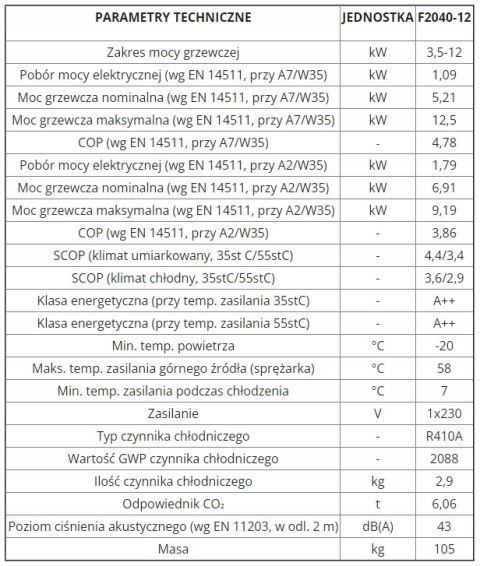 Przedmiotem sprzedaży jest powietrzna pompa ciepła NIBE F2040 12kW, powietrze-woda do c.o. o modulowanej mocy, bez zbiornika