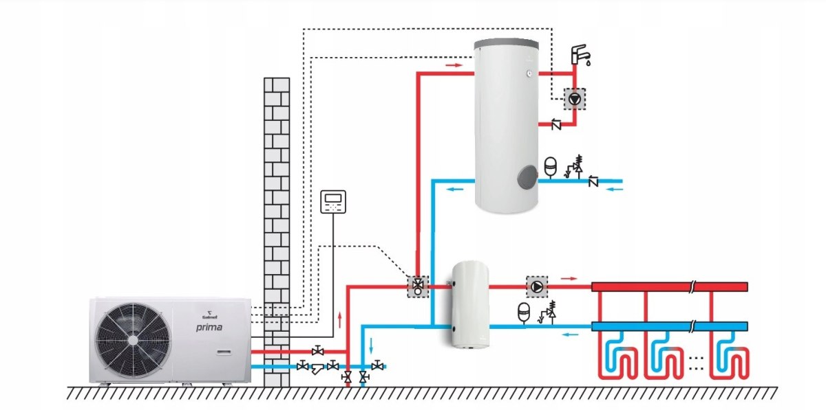 • System 4w1: pompa ciepła + wymiennik c.w.u. + bufor c.o. + zawór trójdrogowy.