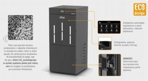 - Ekologia: Niskie emisje CO2 dzięki wykorzystaniu odnawialnego paliwa – pelletu.